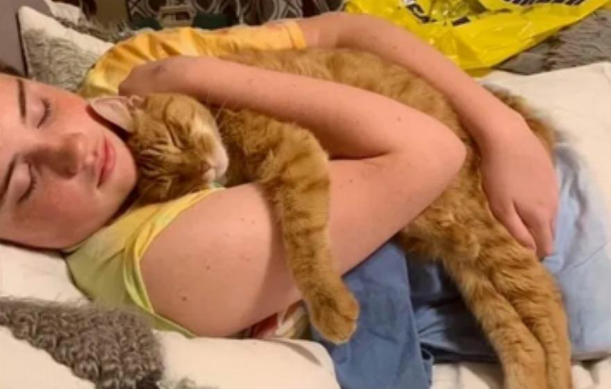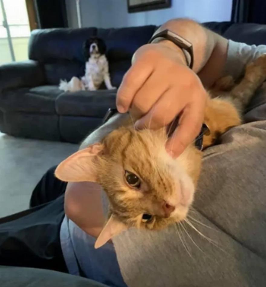 Η γάτα, την οποία ονόμασαν Ferdinand, είναι ατρόμητη. Γρήγορα ανακάλυψαν την προτίμησή του για αγκαλιές. “Καθώς δεν είμαι σε θέση να κρατάω μια γάτα 24 ώρες το 24ωρο, αυτή η ευθύνη έπεσε στην έφηβη κόρη μου”, δήλωσε η Tiffany.