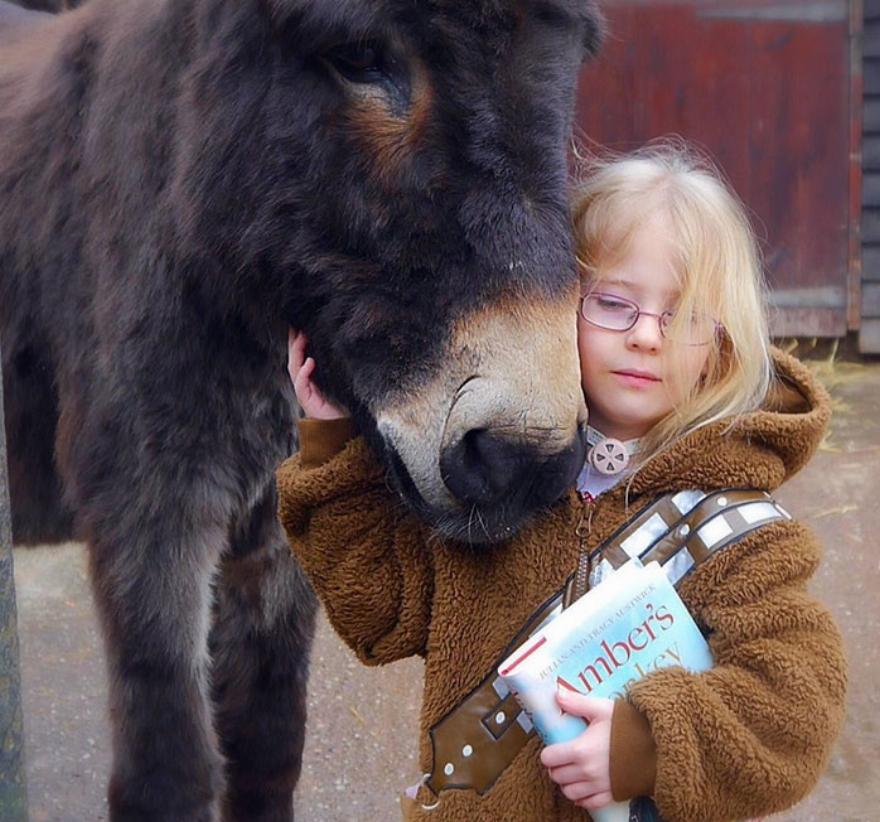 Η μικρή Άμπερ και ο γάιδαρος θεραπείας Σοκς, είχαν δύσκολη αρχή στη ζωή τους. Το τετράποδο βρέθηκε δεμένο με ένα σχοινί στο λαιμό του και το δέρμα του γεμάτο προβλήματα και πληγές. Ευτυχώς διασώθηκε και μεταφέρθηκε στο Καταφύγιο Γαϊδάρων στο Μπέρμιγχαμ της Αγγλίας, όπου συναντήθηκε με την Άμπερ το 2013.