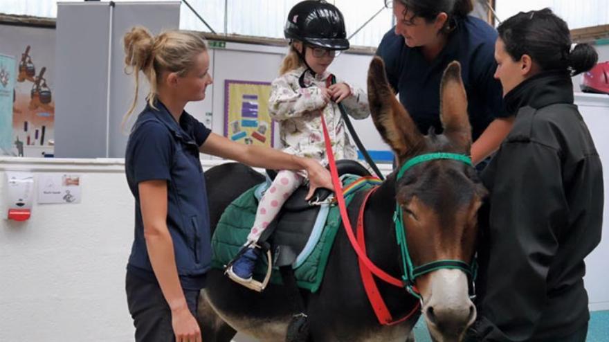 Το κοριτσάκι έκανε μια χειρουργική επέμβαση που της έσωσε τη ζωή, αλλά της αφαίρεσε την ικανότητα να μιλάει.Η Άμπερ που έχει και εγκεφαλική παράλυση, ξεκίνησε να θεραπεύεται μετά τη γνωριμία της με τον γάιδαρο θεραπείας, Σοκς.