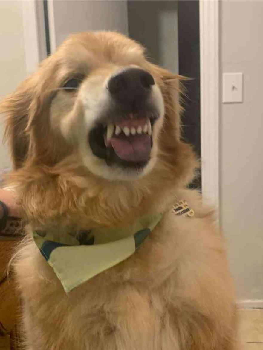 «Είναι συνήθως το αποκορύφωμα της ημέρας στον κτηνίατρο του, στο groomer, στο κατάστημα κατοικίδιων ζώων και σε όλα τα μέρη που συχνάζουμε». «Μόλις τον δουν να έρχεται, φωνάζουν στους συναδέλφους τους,« Το χαμογελαστό golden ήρθε! » Και όλοι θα πλησιάσουν για να τον δουν ».