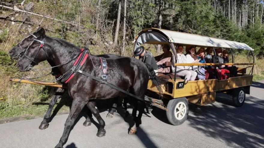Το βίντεο, που δημοσιεύτηκε από την ΜΚΟ για τα δικαιώματα των ζώων, απεικονίζει μια ομάδα τουριστών να περνά μέσα από το Εθνικό Πάρκο Τάτρα προς τη Μόρσκι Όκο, με άμαξες που τραβιούνται από άλογα.