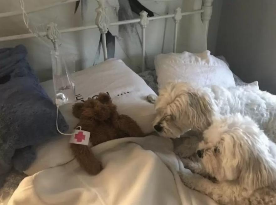 Η κωμωδία δεν τελείωσε εκεί. Ο μπαμπάς της Wallace έφτασε στο σημείο να στήσει ένα μικρό δωμάτιο ανάρρωσης, με έναν ψεύτικο ορό, όπου το λούτρινο αρκουδάκι μπορούσε να ξεκουραστεί και να ανακτήσει τις δυνάμεις του.