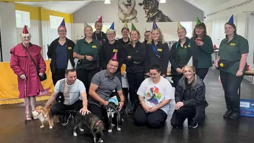 Για τον ένα χρόνο στο νέο του σπίτι, οι ιδιοκτήτες του Τάι και το προσωπικό του Dogs Trust Bridgend διοργάνωσαν ένα πάρτι.
