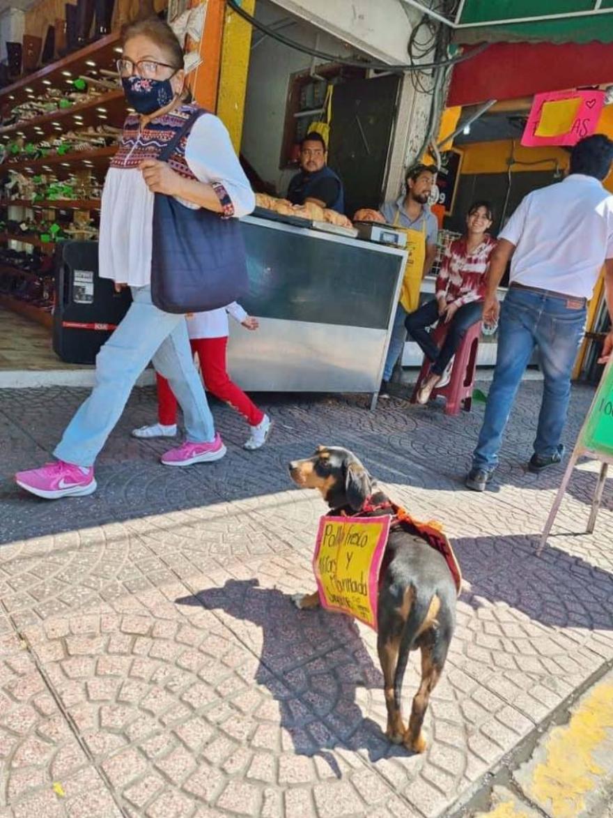 Η αγορά Felipe Carbajal Arcia, στην Tula de Allende, στο Μεξικό, έχει γίνει σχεδόν τουριστική ατραξιόν για τους κατοίκους. Ο λόγος;, ένας συμπαθητικός σκύλος που φέρει μια πινακίδα κρεμασμένη στην πλάτη του, όπου μπορείτε να διαβάσετε τη φράση. “Μαριναρισμένες φτερούγες, χονδρική τιμή. Ακολουθήστε με”.