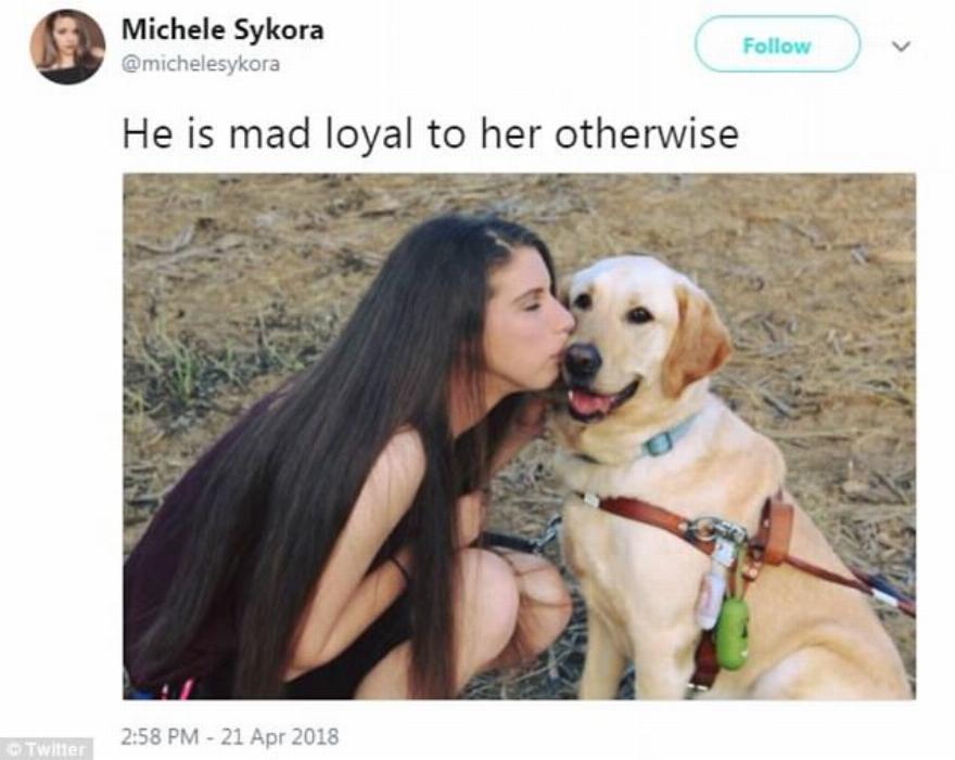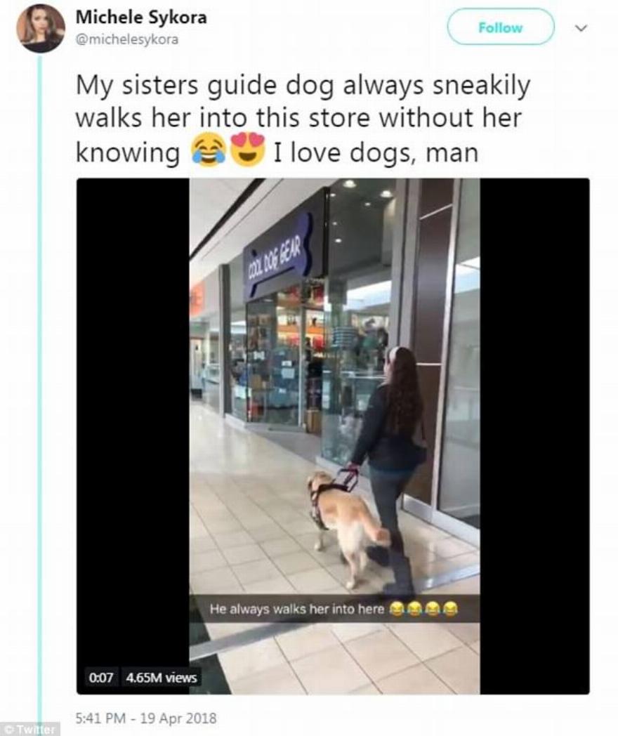 Η Michele μοιράστηκε το βίντεο στο Twitter, γράφοντας: “Ο σκύλος- οδηγός της αδελφής μου πάντοτε την οδηγεί σ’ αυτό το κατάστημα χωρίς εκείνη να το καταλαβαίνει εγκαίρως. Γι’ αυτό αγαπώ τα σκυλιά.”