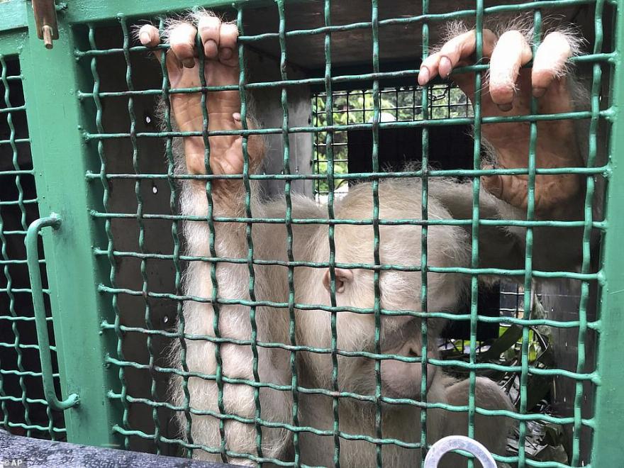 Η Alba, ένα πρωτεύον θηλαστικό με μπλε μάτια καλυμμένο με χνουδωτά λευκά μαλλιά, απομακρύνθηκε το 2017 από ένα κλουβί όπου την κρατούσαν ως κατοικίδιο οι χωρικοί στο τμήμα του Βόρνεο της Ινδονησίας, γνωστό ως Καλιμαντάν.