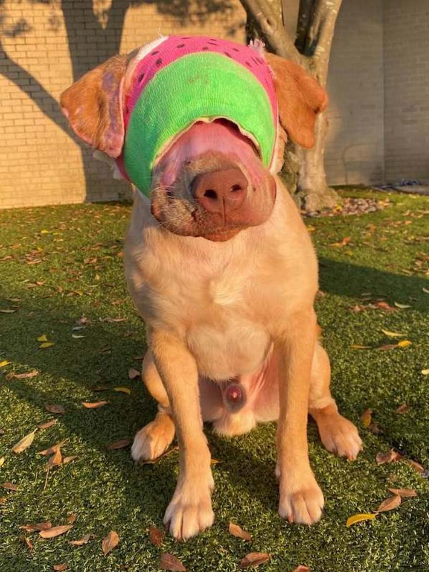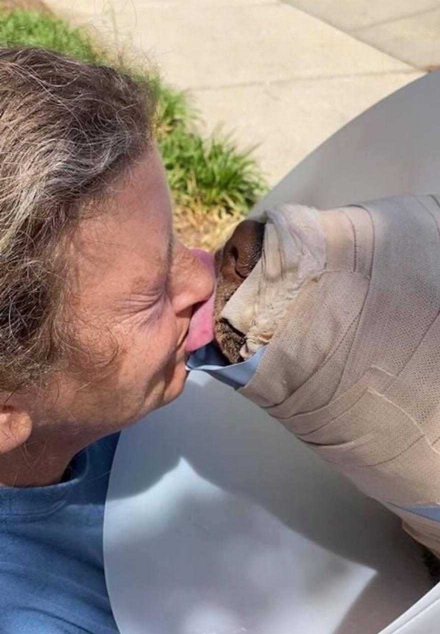 “Χωρίς τους επιδέσμους, ο Buddy θα έβγαζε τα χέρια του και θα έτριβε το πρόσωπο και τα μάτια του για να ανακουφιστεί”, εξήγησε η Sandy Williams, ιδρύτρια και διευθύντρια της Tunica Humane Society. “Αυτό θα μπορούσε να προκαλέσει καταστροφική ζημιά σε όλο το καλό που έχει γίνει μέχρι τώρα. Έτσι, προς το παρόν, το πρόσωπο του Buddy πρέπει να παραμείνει καλυμμένο”.