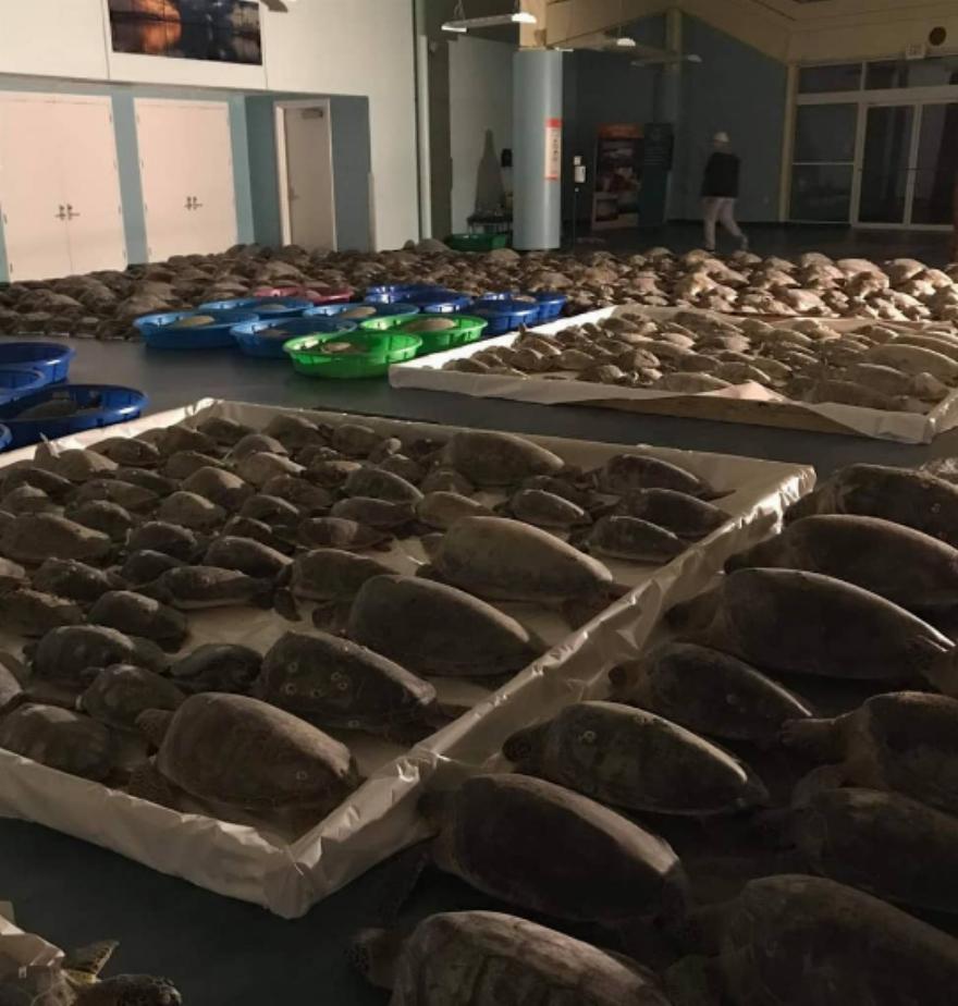 Το Συνεδριακό Κέντρο και Γραφείο Επισκεπτών του South Padre Island έχει γίνει προσωρινό καταφύγιο για χιλιάδες από αυτές τις διασωθείσες χελώνες – φιλοξενώντας μέχρι στιγμής περίπου 3.500.