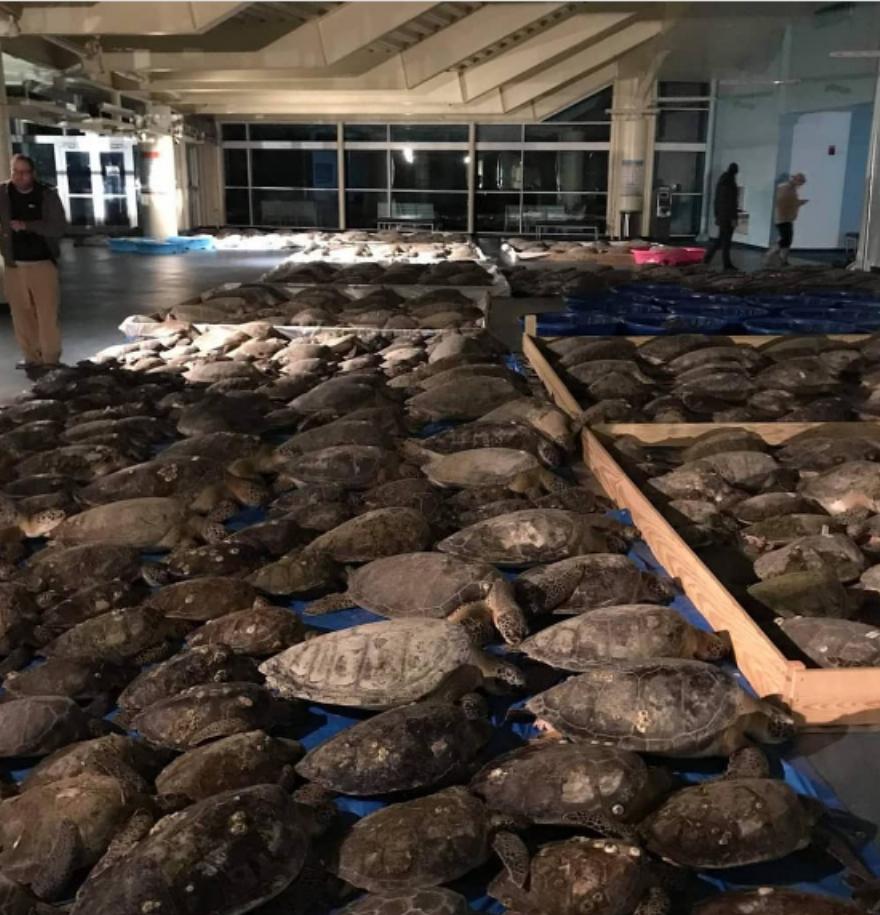 Κατά μήκος της ακτογραμμής, αμέτρητες θαλάσσιες χελώνες έχουν ζαλιστεί από το απειλητικό για τη ζωή τους κρύο – αλλά ευτυχώς, δεν έχουν ξεχαστεί.