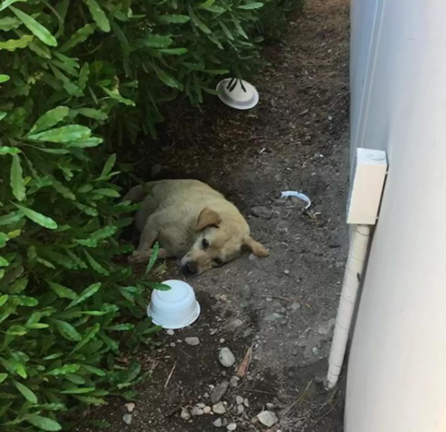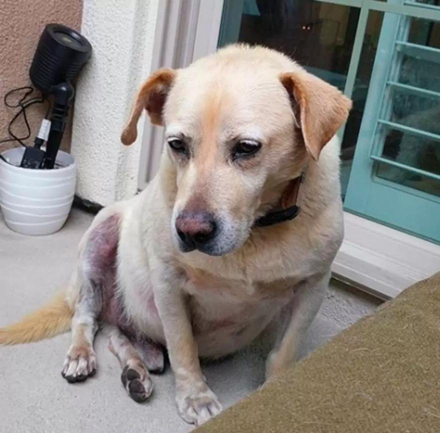 Παρατήρησαν ότι το στομάχι του γέρικου σκύλου ήταν φουσκωμένο, παρά το γεγονός ότι δεν είχε τακτική πρόσβαση σε τροφή ή νερό για μήνες, ενώ του έλειπαν κομμάτια τρίχας από τα πόδια του και δυσκολευόταν να περπατήσει.
