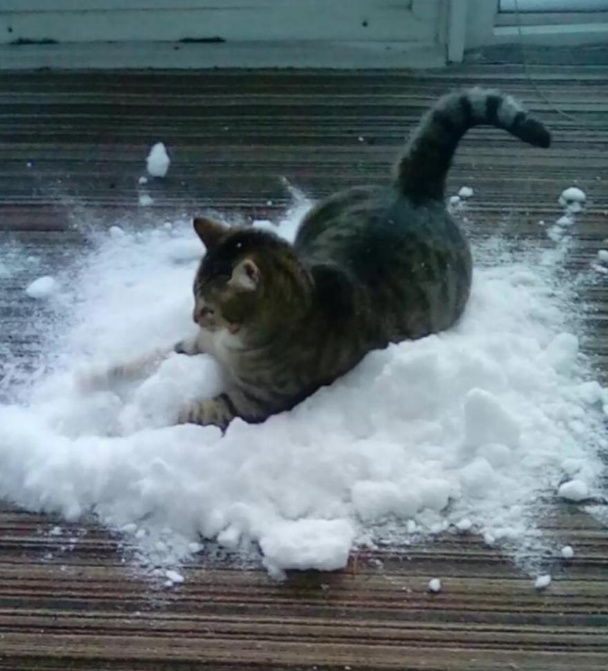“Είναι πάντα ενθουσιασμένος όταν βλέπει τη φτυαριά με το χιόνι και φωνάζουμε, ‘Dibs! Χιόνι”, δήλωσε η Stromseth-Troy. “Μας νιαουρίζει ως απάντηση και τρέχει στη βεράντα κάθε φορά”.
