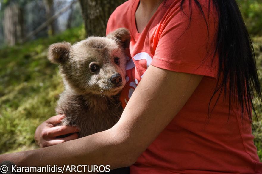 Το αρκουδάκι μεταφέρθηκε υποσιτισμένο στις εγκαταστάσεις του Αρκτούρου, όπου και λαμβάνει φροντίδα.
