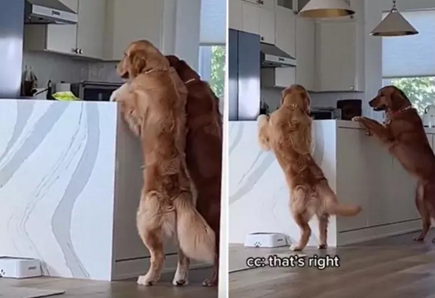 Αυτά τα golden retriever αρνήθηκαν να πιστέψουν ότι δεν μπορούν να φτάσουν μια σακούλα με λιχουδιές, έτσι δούλεψαν μαζί για να φτάσουν τελικά τα αγαπημένα τους σνακ.