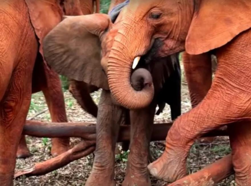 Μόλις τον σύστησαν, οι άλλοι ελέφαντες συγκεντρώθηκαν αμέσως γύρω από το μωρό, κατακλύζοντάς το με αγάπη και προσοχή. Ήταν πλέον μέλος της οικογένειάς τους.
