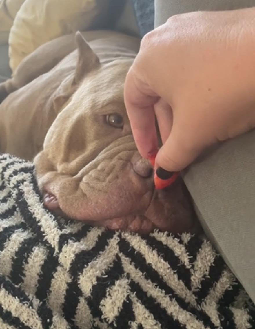 Ο Rhino είναι ένα αμερικανικό μπουλντόγκ και τους αρέσει ο ύπνος τους! Κοίταξε αυτή τη νόστιμη φράουλα για 2 ολόκληρα δευτερόλεπτα, έκλεισε τα μάτια του, άνοιξε το στόμα του, μάσησε τη φράουλα και αμέσως ξανακοιμήθηκε! Δεν νομίζω καν ότι ξύπνησε ποτέ! Ήταν τόσο χαριτωμένο να τον βλέπεις να κοιμάται και να τρώει, και το ροχαλητό στο τέλος ήταν το κερασάκι στην τούρτα.