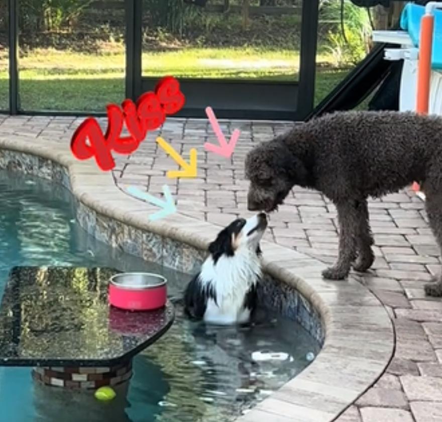 Αυτό είναι αξιολάτρευτο, αλλά αυτά τα δύο σκυλιά πρέπει να τιμωρηθούν γιατί ποιος είπε ότι μπορούν να φιληθούν στην πισίνα; Όχι τηλεόραση για ένα μήνα, LOL!