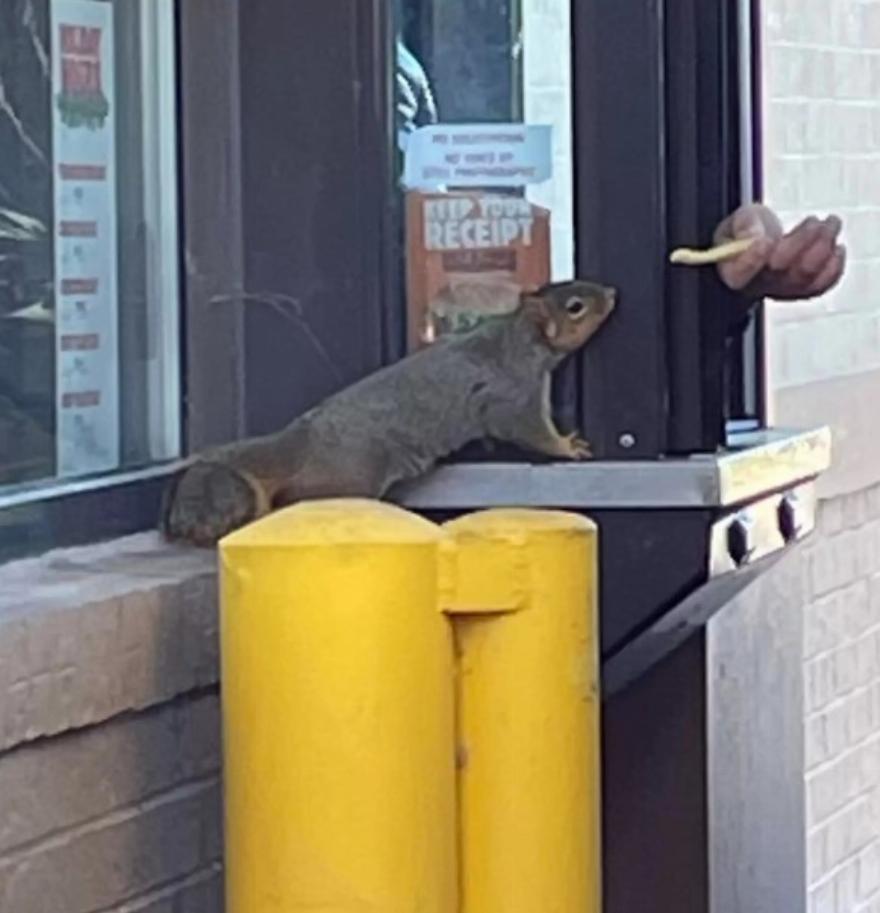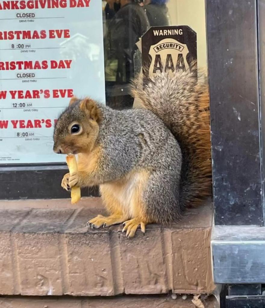 “Παρατήρησα αυτόν τον πολύ ήμερο σκίουρο να κρέμεται στο περβάζι δίπλα στο παράθυρο του drive-thru”, δήλωσε ο Clutch στο The Dodo. “Ωστόσο, δεν το σκέφτηκα καθόλου”.