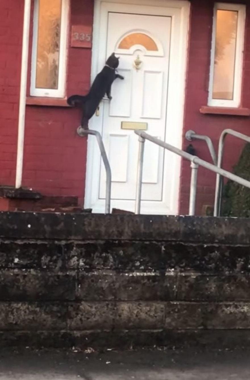 Φαίνεται ότι ο έξυπνος γάτος ήξερε ακριβώς πώς να δώσει σήμα στους ανθρώπους του για να τον αφήσουν να ξαναμπεί στο σπίτι.