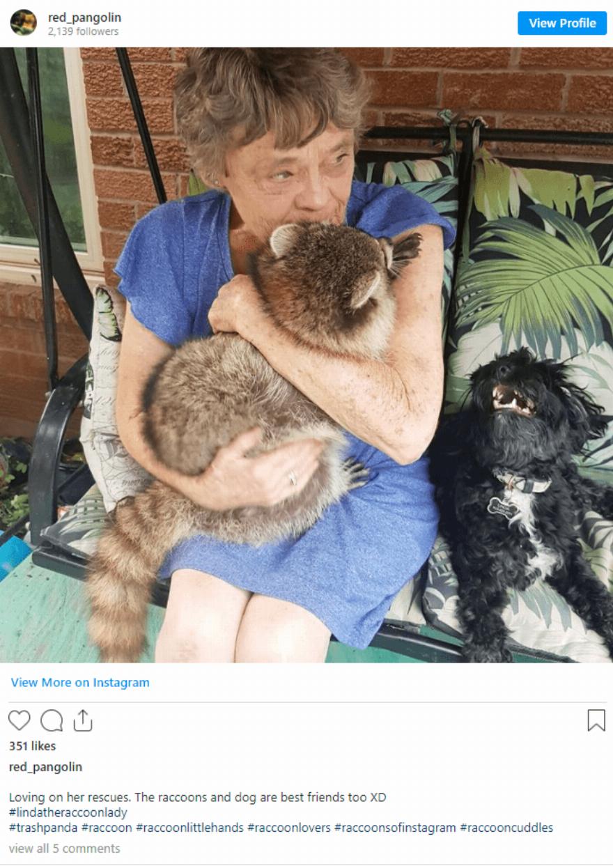 Μια ευγενική γυναίκα μόλις είδε το ρακουν το αγάπησε πολύ. Όμως δούλευε πολλές ώρες με αποτέλεσμα να μην μπορεί να ο πάρει στο σπίτι της κι έτσι τηλεφώνησε στην συνταξιούχο μητέρα της που ήταν σίγουρη πως θα πει ναι στην παρέα του μικρού αυτού ζώου.
