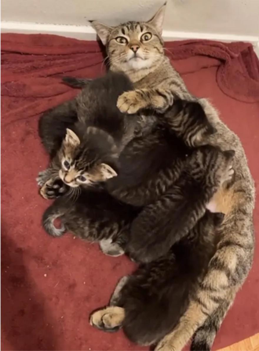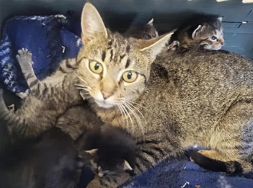 Βρέθηκε έξω μαζί με τα έξι γατάκια της