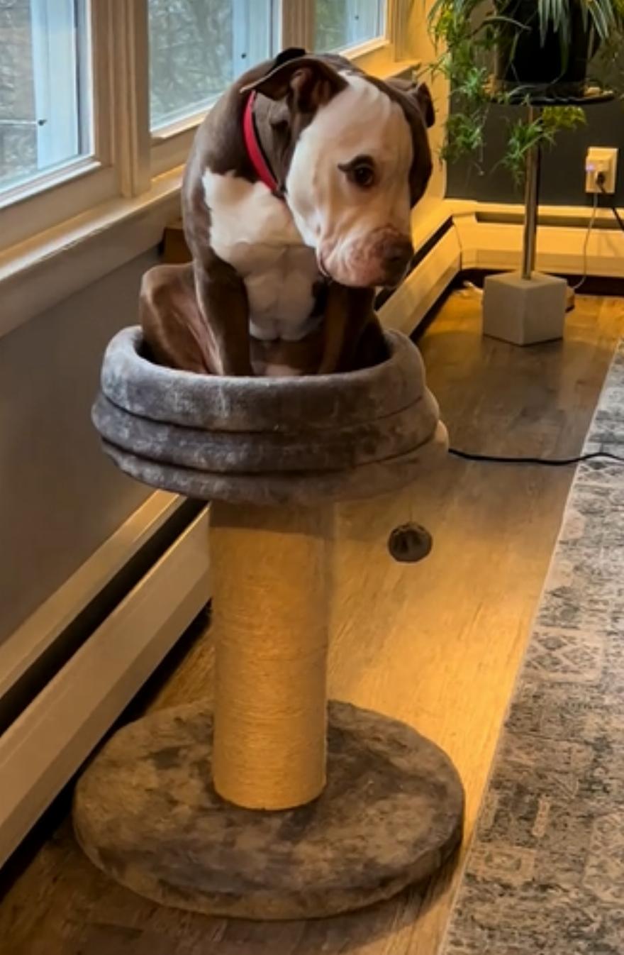@tootsandmaymay Scary dog 😂 #dogtock #dogsoftiktok #rescuedogsoftiktok #pitbullsoftiktok #fyp #dontbullymybully❤ ♬ original sound – Maple + Tyler