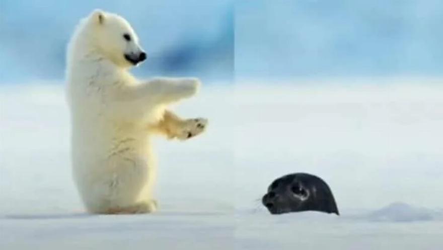 Η Αρκτική, με τα απέραντα παγωμένα τοπία της και τη μαγευτική άγρια φύση της, φιλοξενεί αμέτρητα θαύματα. Ένα βίντεο καταγράφει μια απολαυστική στιγμή όταν ένα νεαρό μωρό πολικής αρκούδας εκπλήσσεται από μια φώκια, προσφέροντας στους θεατές μια συγκινητική ματιά στην παιχνιδιάρικη πλευρά της φύσης.
