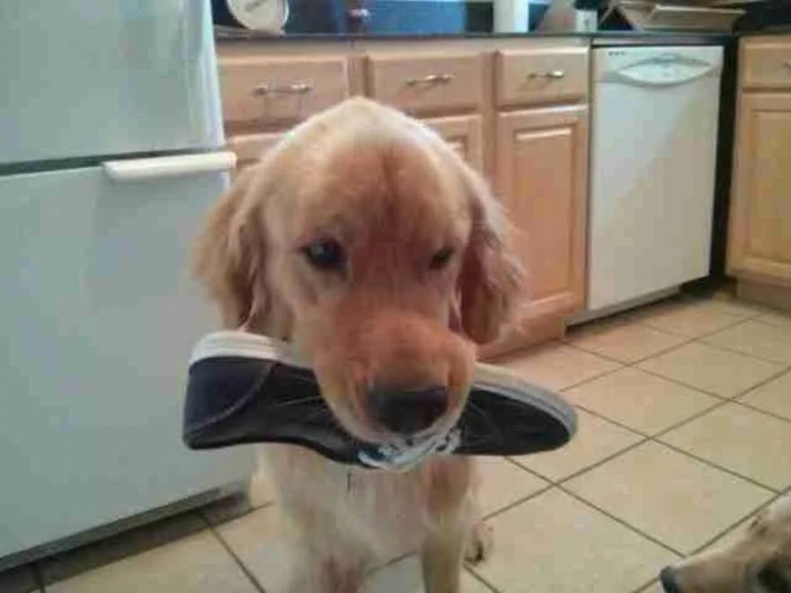 Ακριβώς όπως και τα περισσότερα goldens, όταν έρχομαι σπίτι, με περιμένει στη πόρτα και μου φέρνει ότι αντικείμενο βρει μπροστά του.