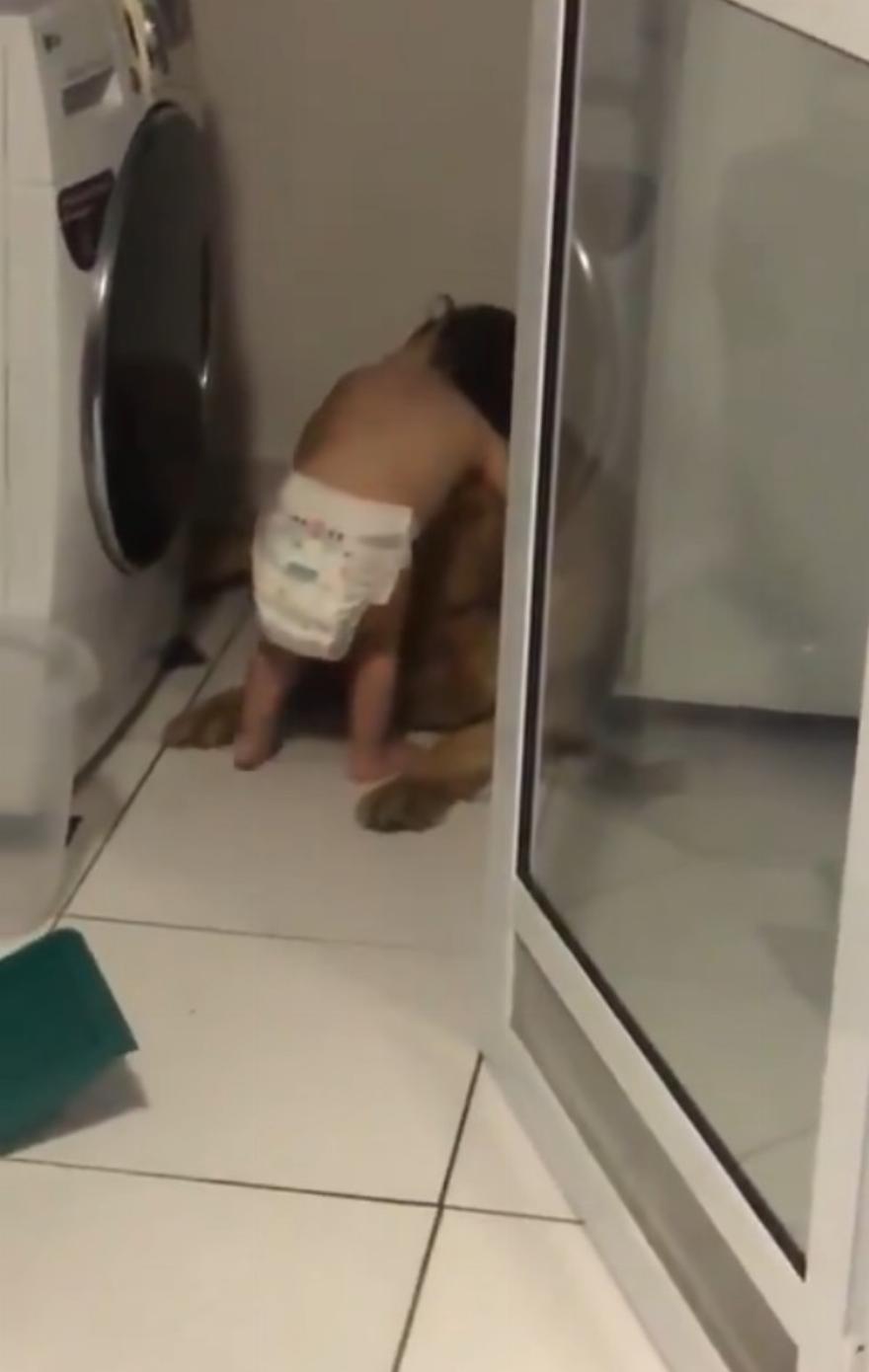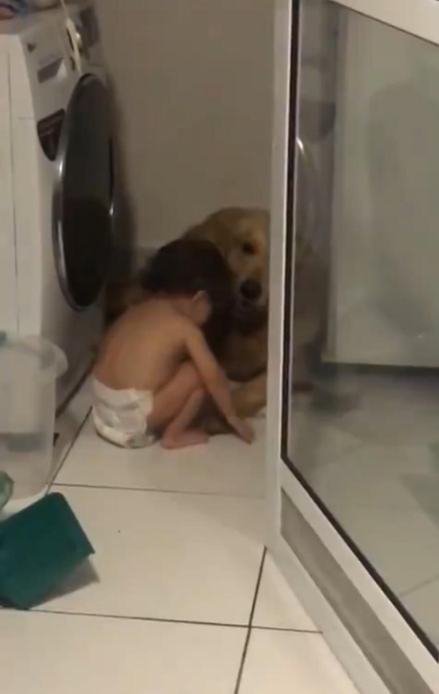 Αυτό το απολιθωμένο σκυλάκι δεν ήταν μόνο του, καθώς ένα γλυκό μικρό παιδί αποφάσισε να παρηγορήσει το ζώο. Το παιδί φαίνεται να φοράει πάνα και να κάθεται ακριβώς δίπλα στον τριχωτό του φίλο. Τον αγκαλιάζει, τον χαϊδεύει, τον αγκαλιάζει και του δίνει παρηγορητικά λόγια.