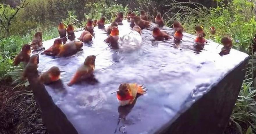 Ο φωτογράφος wildwingsla, ο οποίος ανέβασε αυτό το βίντεο, λέει: “Ένα ρεκόρ 30 κολιμπρί κάνουν μπάνιο μαζί ταυτόχρονα κατά τη διάρκεια του πρωινού πλυσίματος! Δεν φαντάζεστε ότι σε πέντε λεπτά θα παρενοχλούν το ένα το άλλο…”.