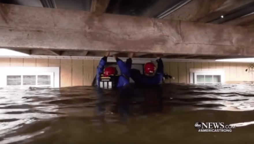 Το βίντεο που ακολουθεί δείχνει τους διασώστες να προσπαθούν να μπουν στο σπίτι. Τα νερά της πλημμύρας είχαν ύψος σχεδόν έξι με επτά μέτρα και έφταναν σχεδόν μέχρι την κορυφή της πόρτας και των παραθύρων. Συνεργαζόμενοι, κατάφεραν τελικά να κλωτσήσουν την πόρτα και να κολυμπήσουν μέσα στο σπίτι για να ανακτήσουν το απολιθωμένο κουτάβι.