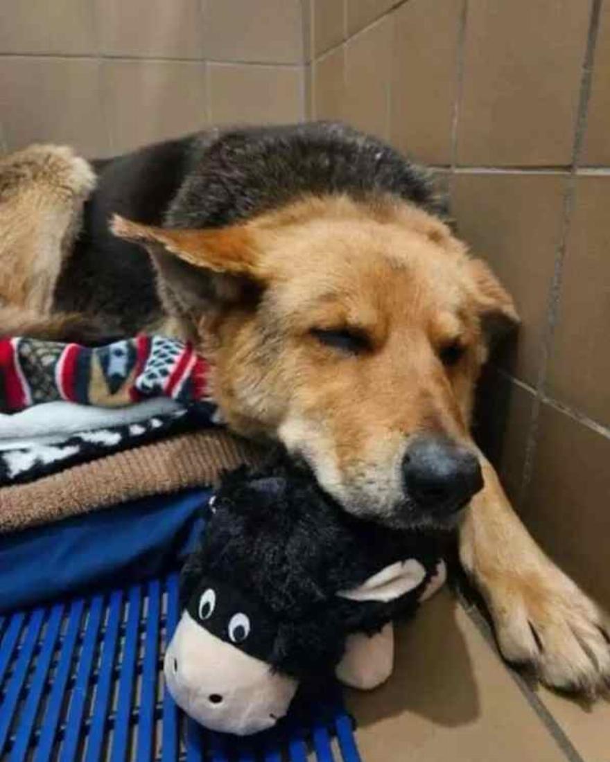 «Δυστυχώς, ο ιδιοκτήτης της πέθανε», εξηγεί η Gail Montgomery, διευθύντρια του Almost Home Animal Rescue League. «Και κάπως έτσι άρχισε να περιφέρεται μόνη της με το λούτρινο κουκλάκι της», λέει στο The Dodo.