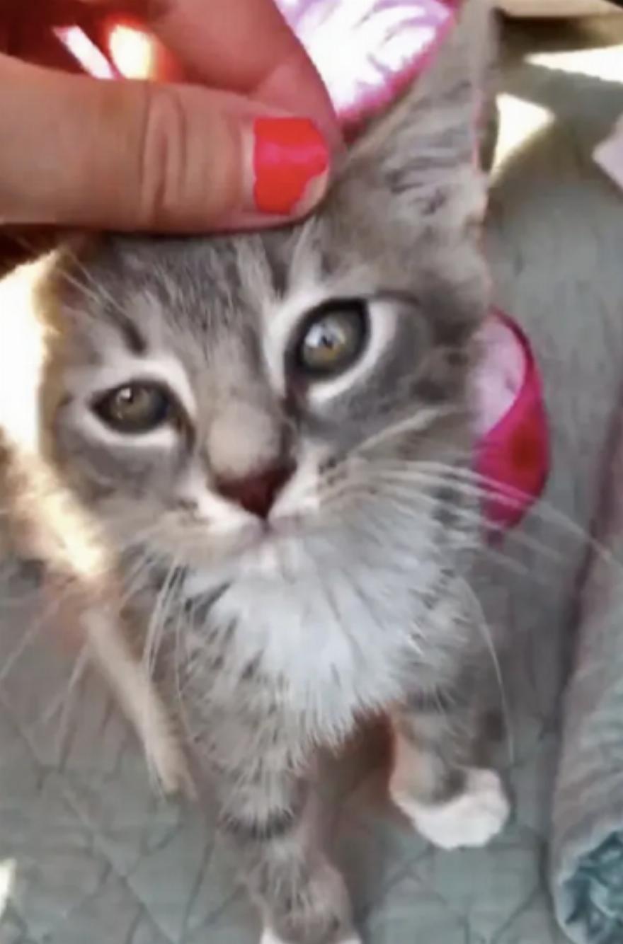 “Ήταν ένα μοναχικό γατάκι. Κάποιοι ποδηλάτες την βρήκαν βρώμικη κάτω από ένα αυτοκίνητο και την κουβάλησαν ψάχνοντας για κάποιον να την πάρει”, είπε η Madison.