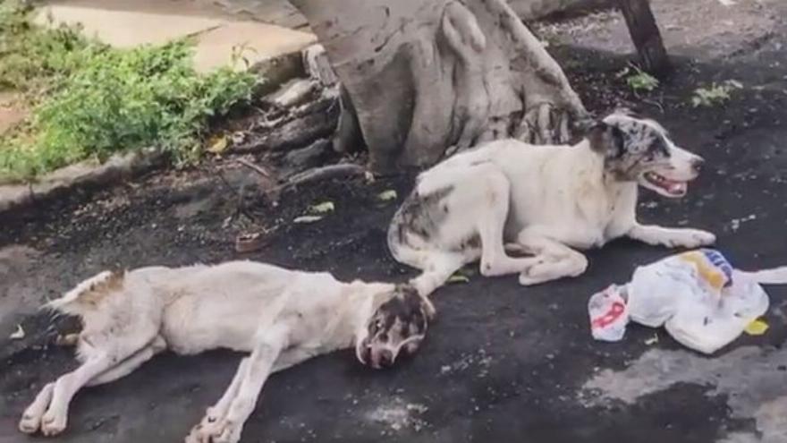 Ένας άλλος σκύλος βιντεοσκοπήθηκε να βρίσκεται στο πλευρό του τραυματισμένου σκύλου σε βίντεο που έχει γίνει viral στο διαδίκτυο.