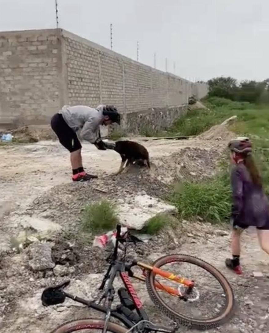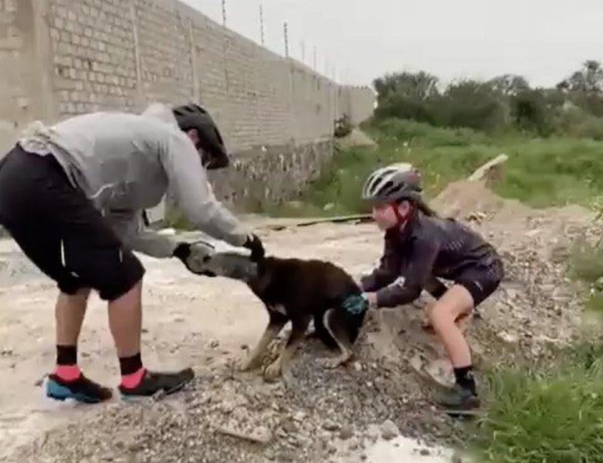 Μια ομάδα φίλων και συγγενών που έκαναν βόλτα με το ποδήλατο στα περίχωρα της πόλης Santiago de Querétaro στο Μεξικό ήρθε να σώσει τον σκύλο.