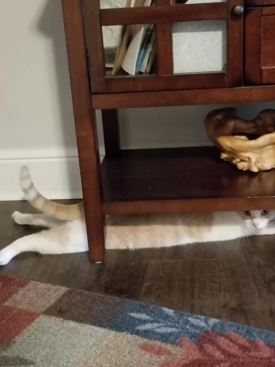 Είτε είναι κάτω από ένα τραπέζι είτε κάτω από το ανοιχτό πλυντήριο πιάτων, ο Keanu είναι πάντα σε θέση να βρει ένα διασκεδαστικό σημείο για να κρυφτεί. Παρόλο που η οικογένειά του μπορεί να τον βλέπει απόλυτα τις περισσότερες φορές, έγινε γρήγορα σαφές ότι ο Keanu δεν το έχει συνειδητοποιήσει ακόμα. Σίγουρα νομίζει ότι είναι εντελώς κρυμμένος κάθε φορά.