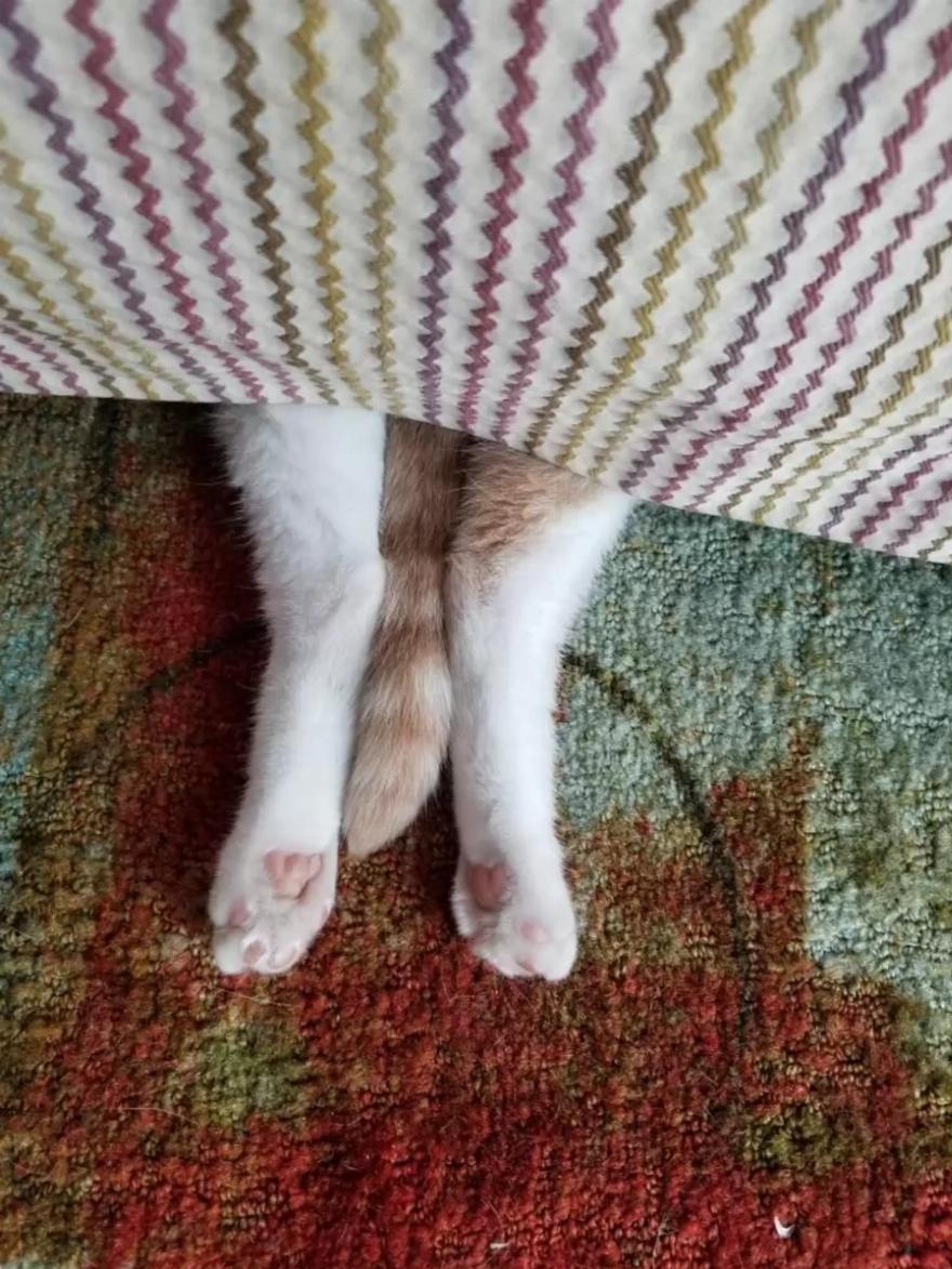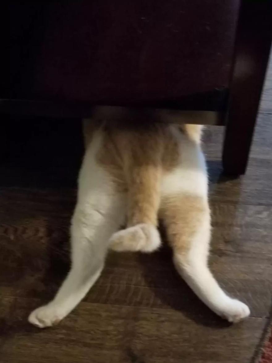 “[Νομίζει] ότι δεν μπορούμε απολύτως να τον δούμε”, δήλωσε ο Baker. “Τον φωνάζουμε (και συνήθως νιαουρίζει πίσω), αλλά όταν κρύβεται δεν ανταποκρίνεται. Ακόμη και αν χτυπήσουμε τα πόδια του για να του δώσουμε να καταλάβει ότι τον βλέπουμε, δεν κουνιέται”.