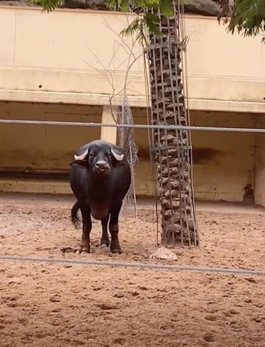 Το ερπετό ήταν ανάποδα, με το κέλυφος του στο έδαφος και τα πόδια του στον αέρα, χωρίς να μπορεί να κινηθεί. Το βουβάλι κατά κάποιο τρόπο κατάλαβε τι συνέβαινε και πλησίασε αμέσως τη χελώνα για να τη βοηθήσει.