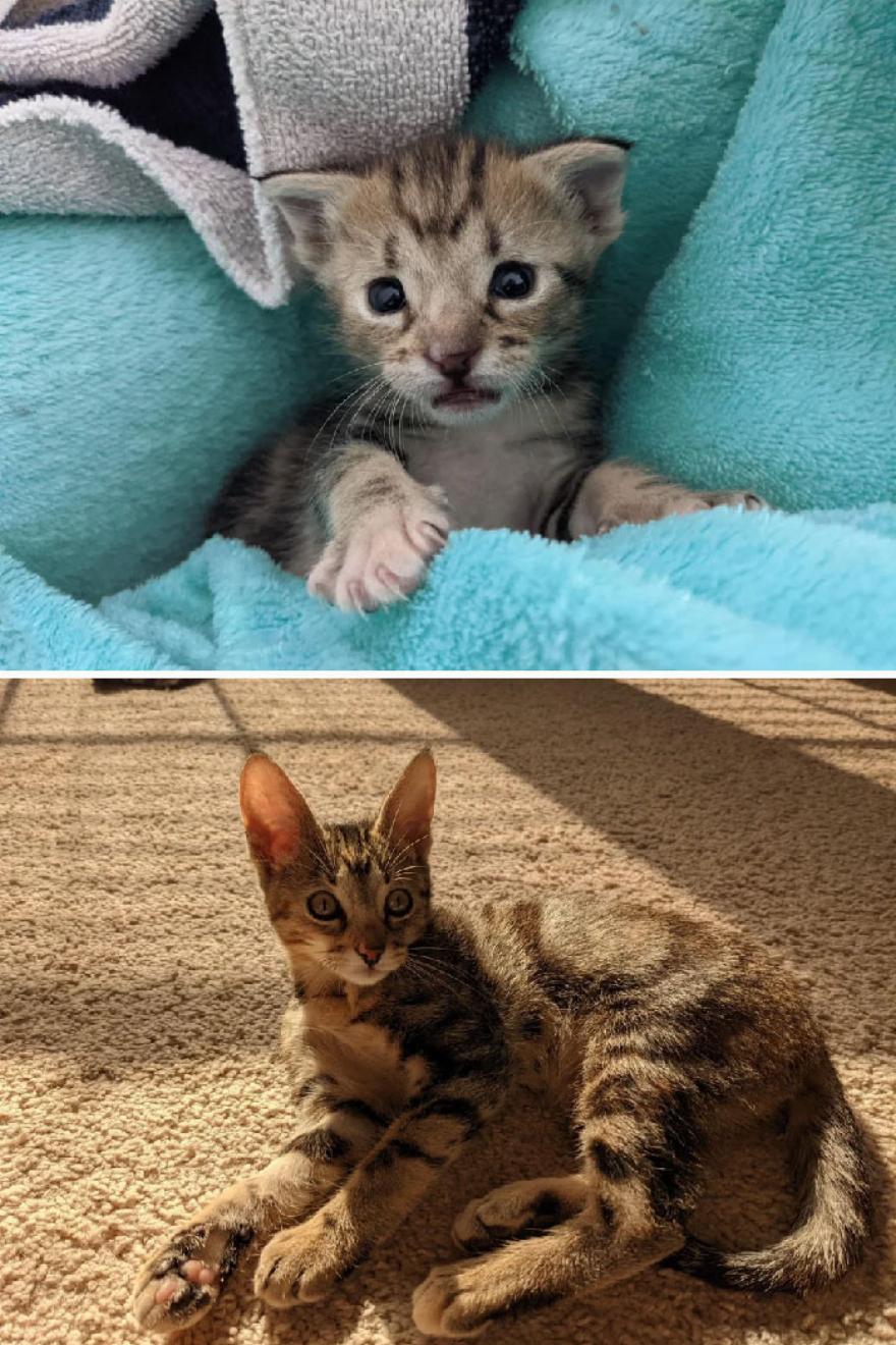 13. “Πριν από 1 χρόνο βρήκα αυτό το μικροσκοπικό γατάκι στη μέση του χώρου στάθμευσης στη δουλειά μου. ”
