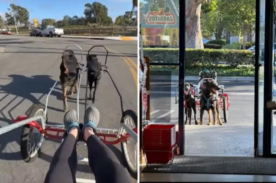 Η χρήστης του TikTok @fancy_pie28 μοιράστηκε ένα βίντεο με τον τρόπο μετακίνησής της: ένα καρότσι που το τραβούν τα δύο σκυλιά της.
