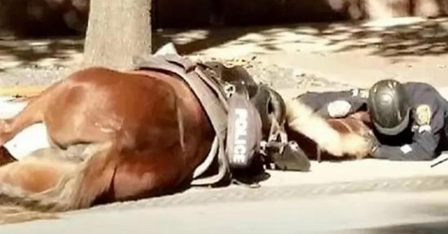 Συναισθηματικά, ο αστυνομικός Herrejon ξάπλωσε δίπλα στο άλογο για να το παρηγορήσει στις τελευταίες του στιγμές!