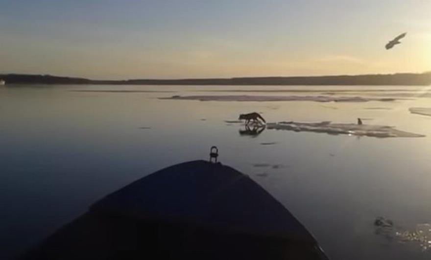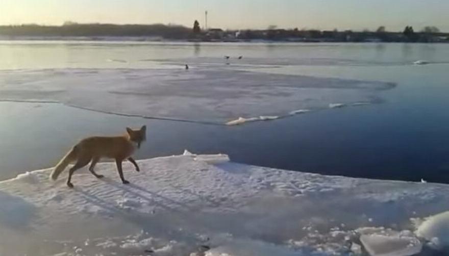 Ψαράς βλέπει αλεπού παγιδευμένη στον πάγο και την βοηθά να βγει στη στεριά