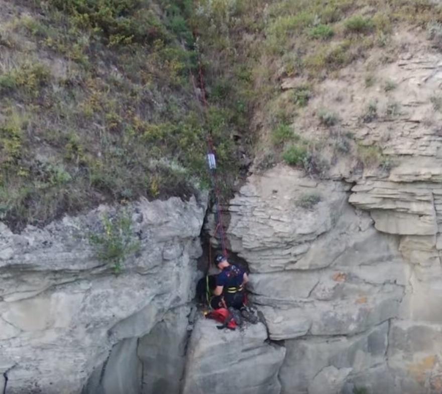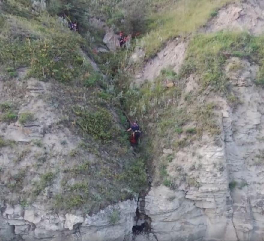 Οι πυροσβέστες στο Grande Prairie της Alberta έπεσαν τυχαία πάνω στο σκύλο όταν ανταποκρίθηκαν σε μια διαφορετική κλήση. Ένας αξιωματικός της Περιφερειακής Πυροσβεστικής Υπηρεσίας Grand Prairie εντόπισε τον σκύλο – αλλά η θέση του σκύλου απαιτούσε μια επιχείρηση διάσωσης πλήρους κλίμακας, επειδή βρισκόταν στα τρία τέταρτα της διαδρομής σε ένα γκρεμό 80 ποδιών.