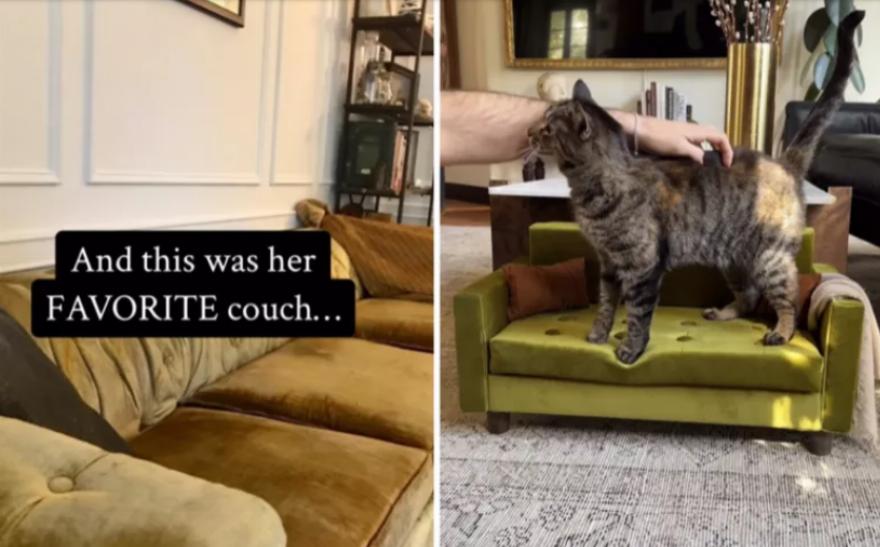 Σε ένα βίντεο που μοιράστηκαν στο Instagram, ένα ζευγάρι φαίνεται να φτιάχνει ένα μικροσκοπικό αντίγραφο του παλιού καναπέ τους για τη γάτα τους Beebs, με το ίδιο χρώμα, ύφασμα και σχέδιο, αφού το αιλουροειδές έχασε τον “αγαπημένο” του.