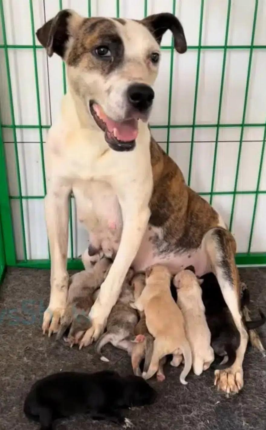 Η πρώτη στάση ήταν η κλινική ζώων, όπου έγινε μια ακτινογραφία που αποκάλυψε εννέα μικρά στην κοιλιά της Μόρι. Ο νέος της ιδιοκτήτης της ετοίμασε ένα άνετο και ασφαλές μέρος για τη γέννα.
