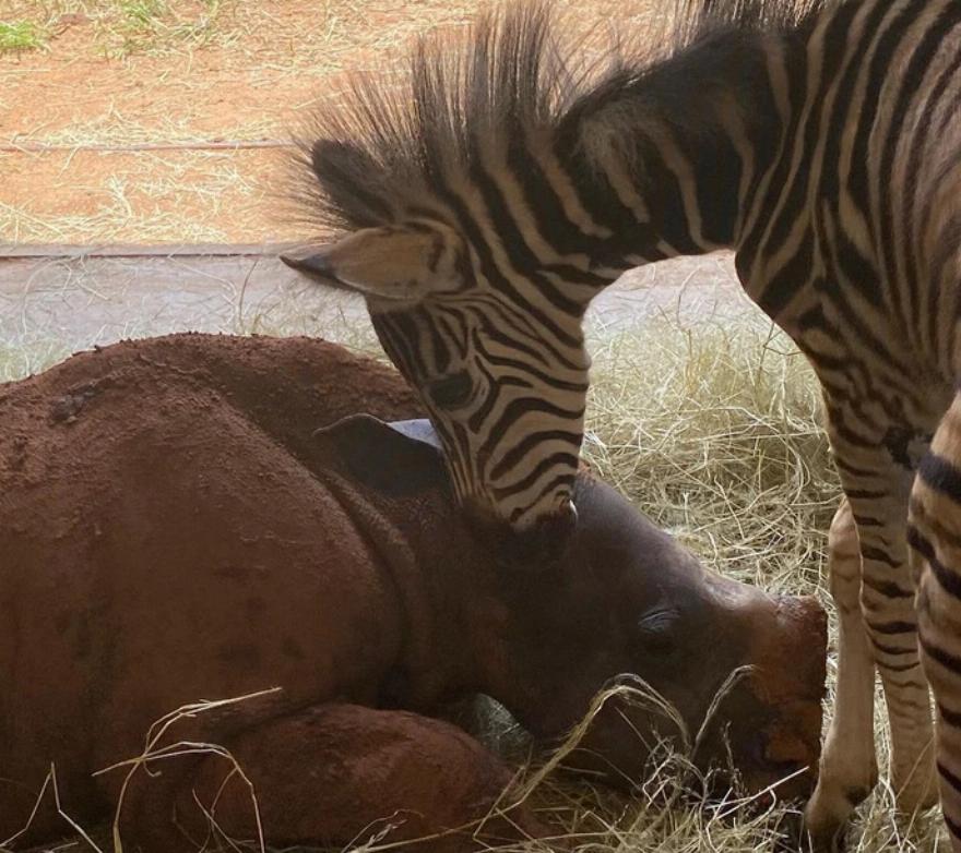Η Modjadji η ζέβρα είναι εξαιρετική για το ρινόκερο μωρό.