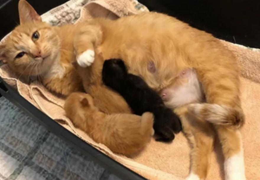 Η αδέσποτη γάτα και τα γατάκια της διασώθηκαν