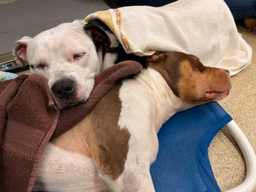 Οι διασώστες ονόμασε τα σκυλιά Heart and Soul και τα πήγε και τα δύο στο κέντρο τραυμάτων όπου η τραυματισμένη Soul μπορούσε να ναρκωθεί και να ελεγχθεί σωστά από επαγγελματίες γιατρούς. Μετά από ακτινογραφίες, οι κτηνίατροι μας είδαν ένα κακό σπάσιμο στην πλάτη του, είπαν ότι ήταν “κομμένο” και δεν θα μπορούσε να επουλωθεί.” είπε ο Τόμσον.