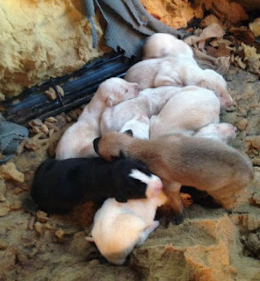 “Μας πήγε μέσα από τα σοκάκια και τους κεντρικούς δρόμους, μέσα από τα χωράφια και σε λασπωμένα μονοπάτια, σέρνοντας κατά τόπους τον γύψο της… Εκεί στο πίσω μέρος ήταν 10 όμορφα, χοντρά, μικρά υγιή κουτάβια”, είπε η Powell.
