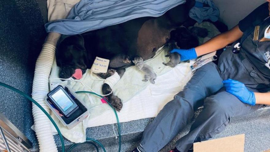 Της έκαναν ακτινογραφίες για να δουν αν είχε άλλα κουτάβια μέσα της και ξεκίνησαν αμέσως μια επείγουσα καισαρική τομή όταν είδαν ότι της είχαν απομείνει ακόμα περισσότερα από δέκα κουτάβια.