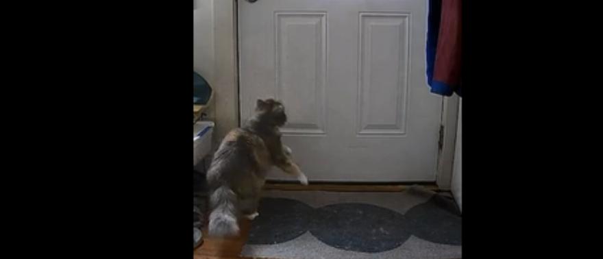 Με περισσότερα από 70.000 upvotes στο Reddit, το βίντεο έχει ενθουσιάσει τους θεατές που έμειναν άφωνοι με την ασυνήθιστη συμπεριφορά της γάτας.